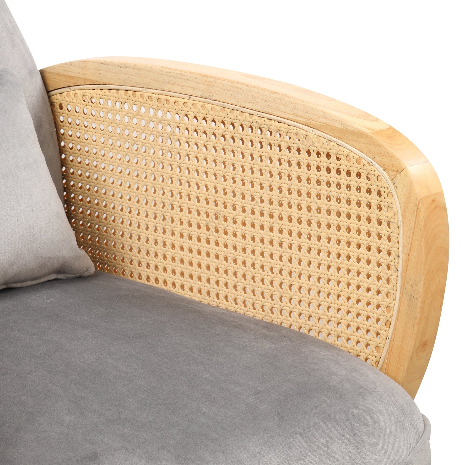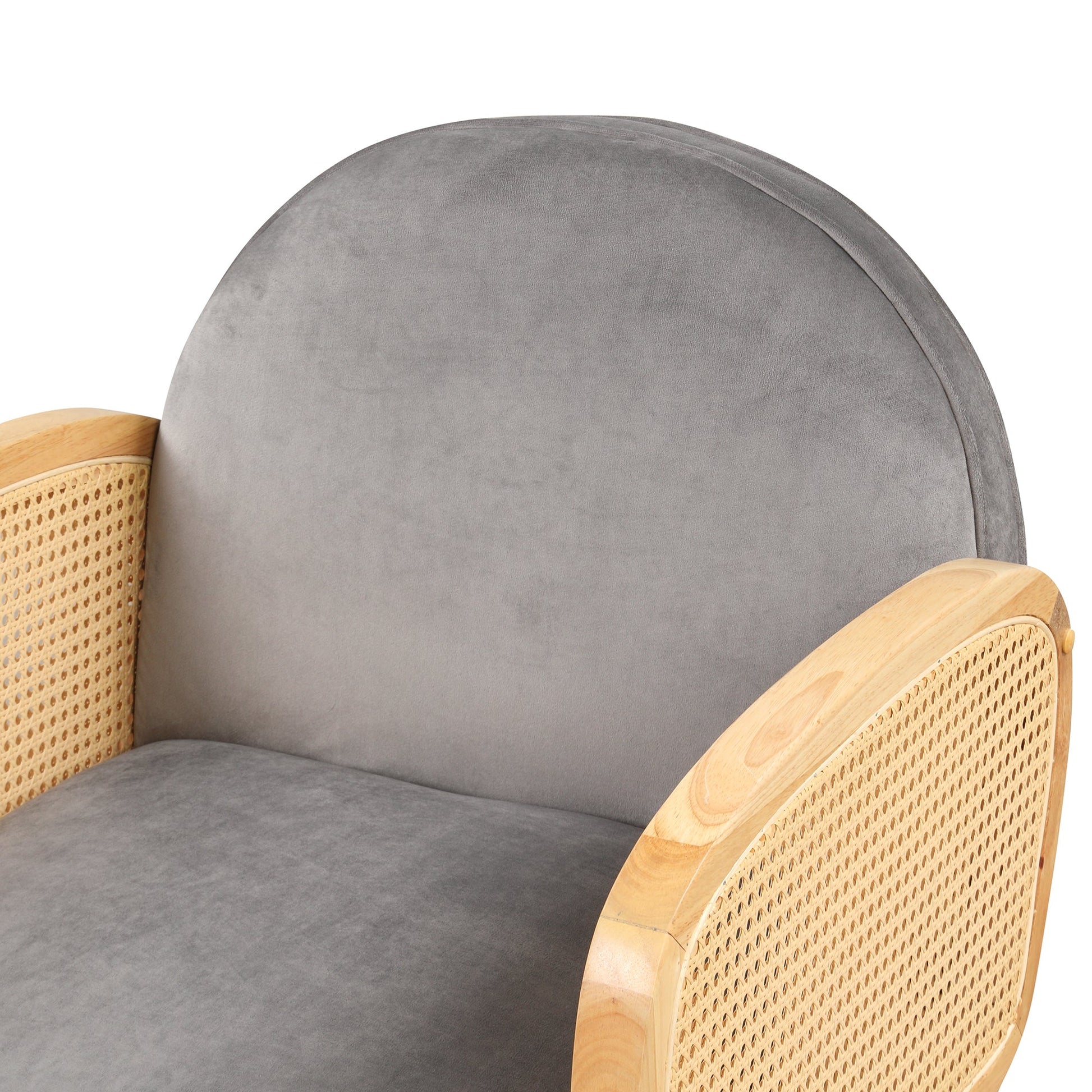 Amchair With Rattan Armrest and Metal Legs Upholstered Mid Century Modern Chairs for Living Room or Reading Room, Grey