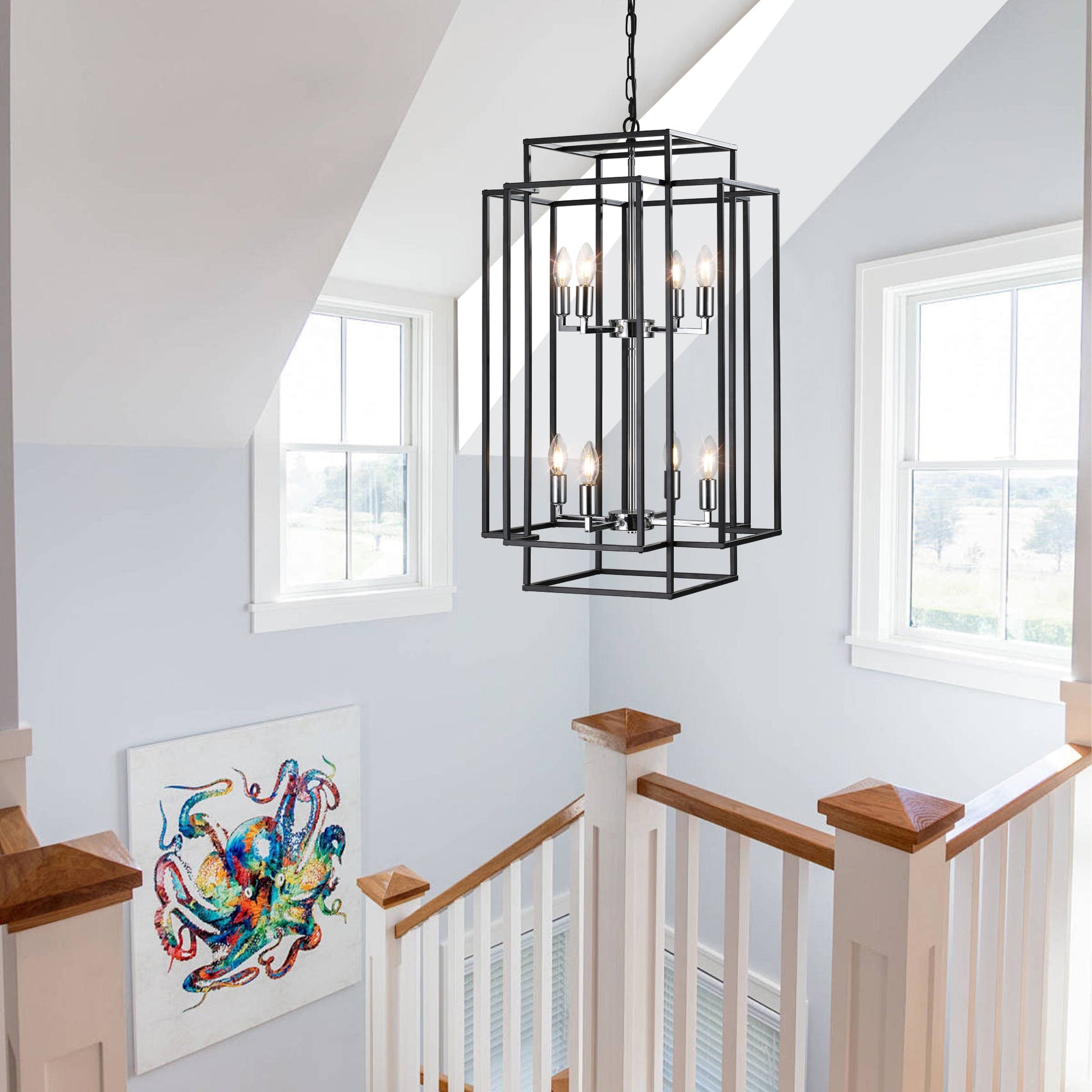 Perfect Design Style: This foyer chandelier has a black geometric frame and a black central lamp base. It is the perfect complement to the lamps in your home. This kitchen island chandelier is the perfect choice for you! More and more customers are picking this fixture for better comfort and to meet the new popular styles. It is suitable for all decoration styles. this foyer chandeliers for high ceilings No assembly required.Adjustable Boom & Multi-Scene Applications: The foyer lighting fixtures length of the boom is 60 inches/150 cm. Consists of removable metal rods that allow you to easily adjust the height. foyer chandelier for: living room, room, Hallway, dining room, kitchen island, farmhouse, foyer.